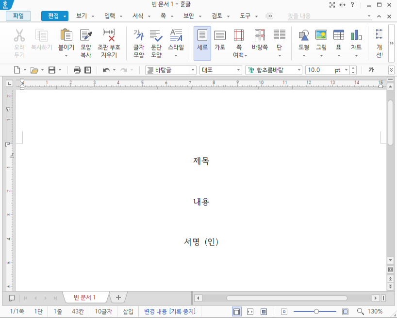 서명을 첨부할 한글 파일 서류를 엽니다.